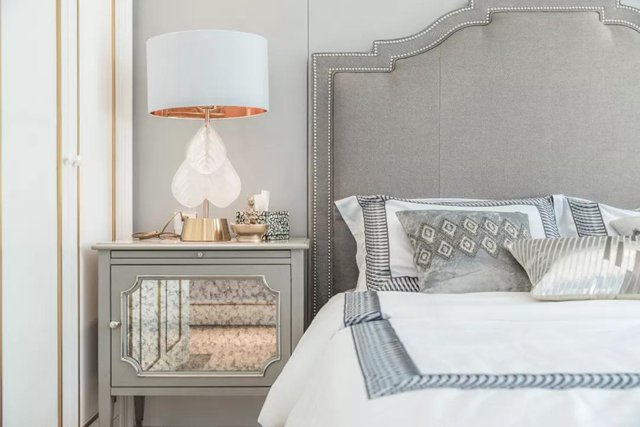 女儿房和男孩房的墙面都采用透气环保的乳胶漆进行装饰,女儿房温婉可人的色调配以舒适清新的床品配饰,清秀的米色中有一缕可爱的粉色加以调和。男孩房则以灰蓝色和沙滩色进行搭配,有海一般清爽自然之感。