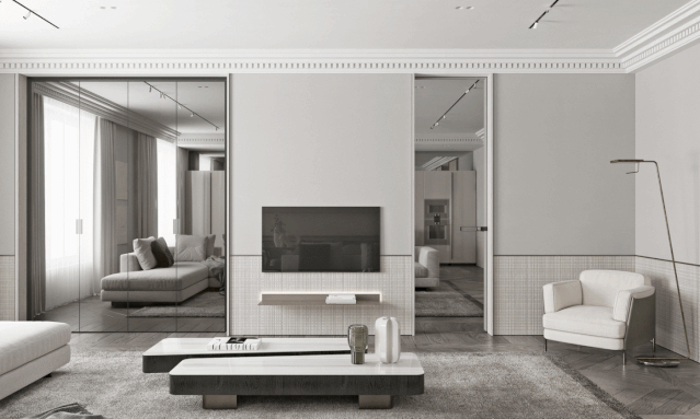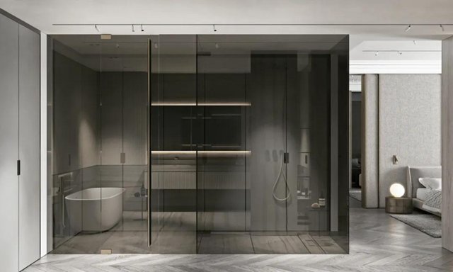 空间还采用大理石、黄铜、黑色烤漆、镜面、玻璃等具有细腻光泽感的材质轻提空间的奢华恬静。