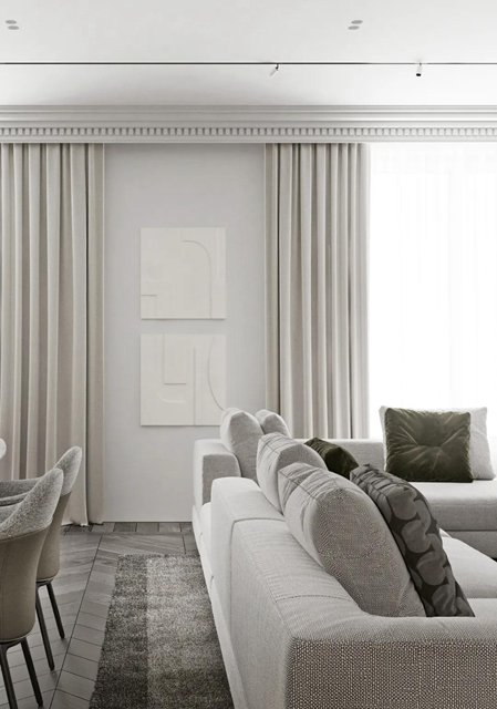 整体空间以灰调贯穿交织出低调内敛的气质,极简主义的家具、自然柔和的面料在这基础上凝练出现代高雅的生活气息。