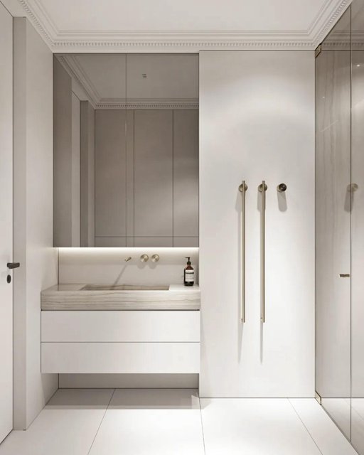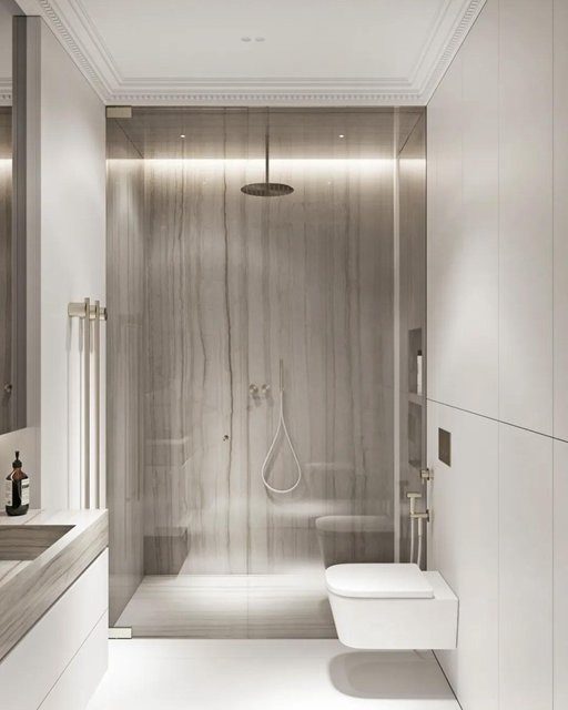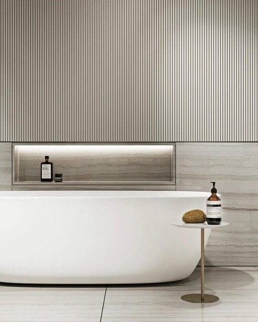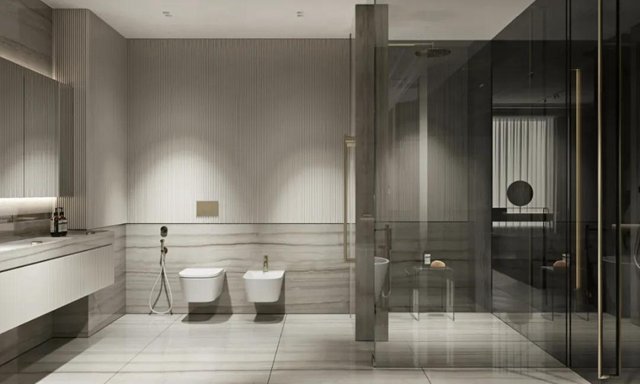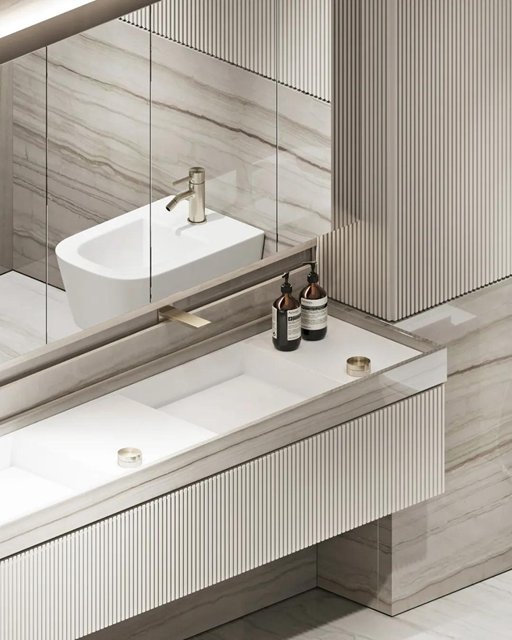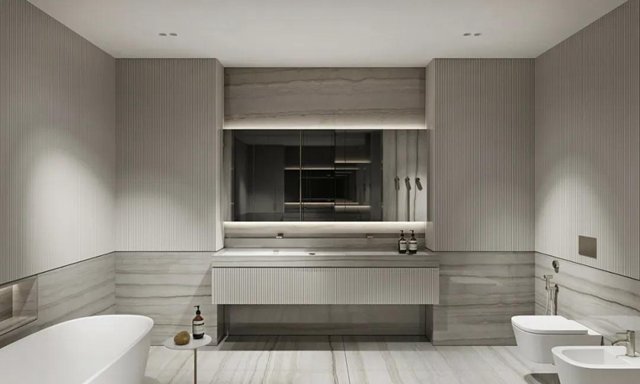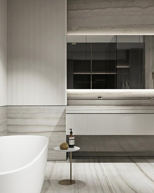 水纹的大理石与条纹的墙面,规则的肌理与自然的肌理碰撞绽放出美妙的韵律,充斥着整个空间。